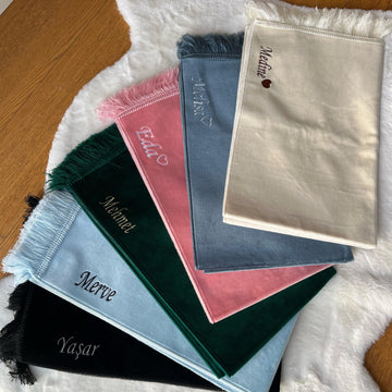 Özel kadife üretim seccadelerimiz üzerine istediğiniz isim veya sözü yazarak secdenizi en özel hale getirmeye çabalıyoruz. İnsanlar kendilerine özel eşyalar ile yaptıkları işlere daha hevesli olmaktadır.