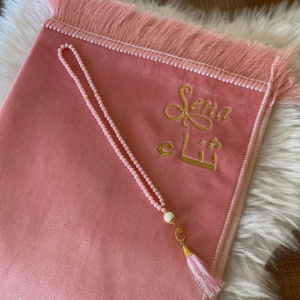 Kişiye Özel İsimli Kadife Seccade Pembe