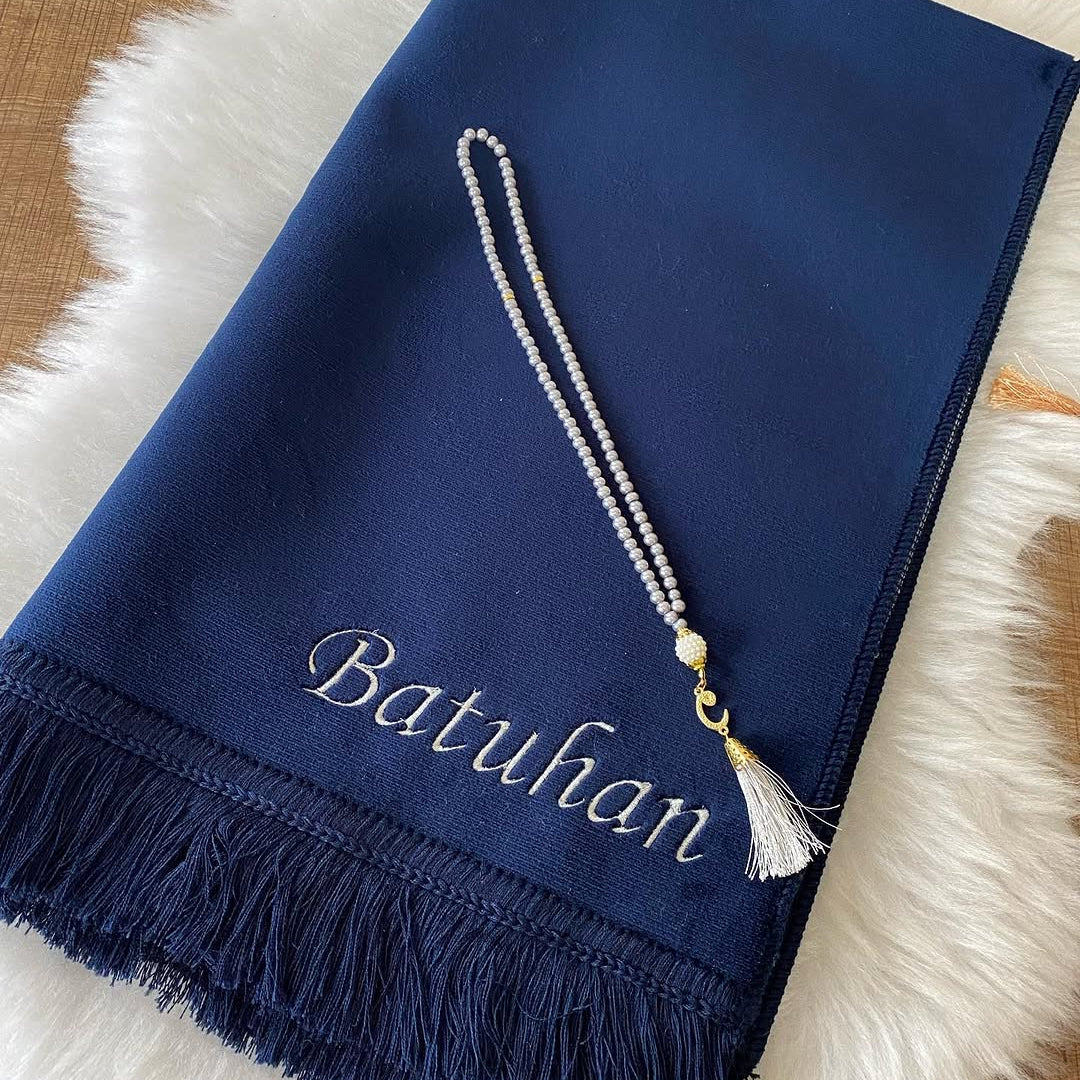 Kişiye Özel İsimli Kadife Seccade Lacivert