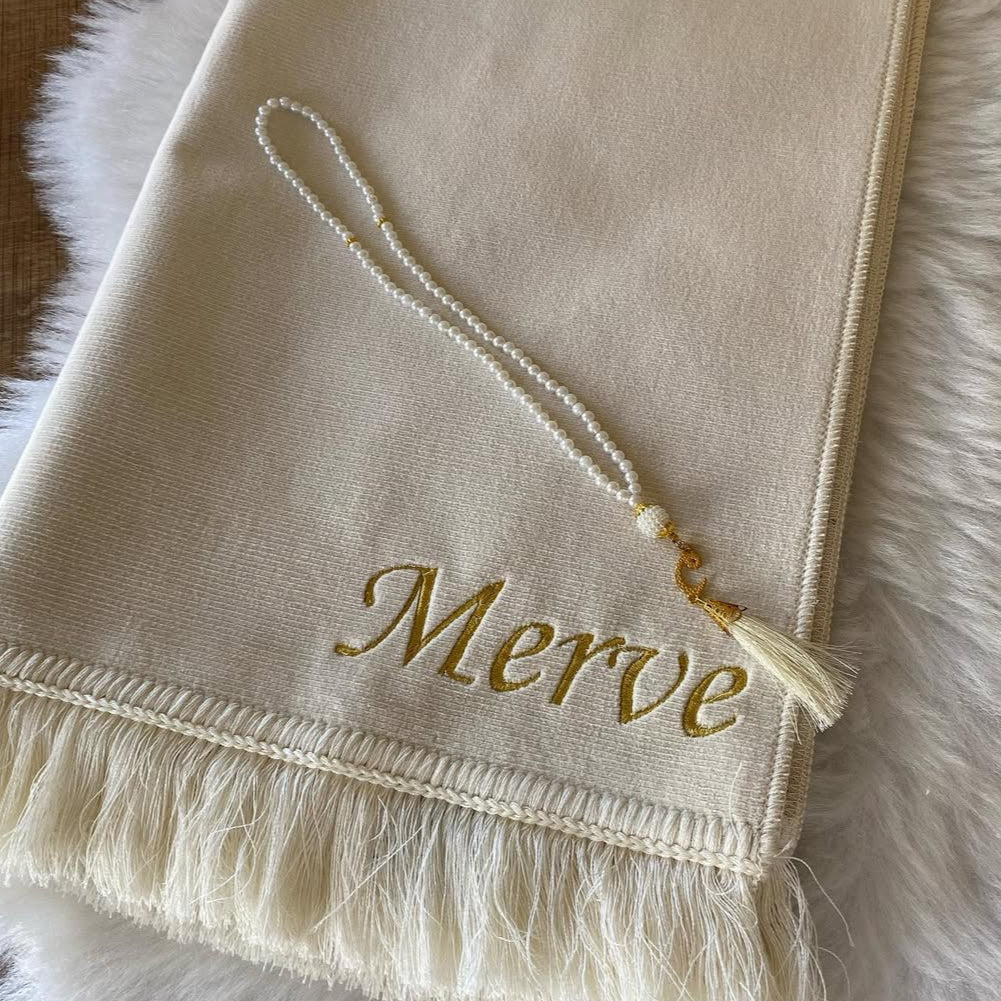 Kişiye Özel İsimli Kadife Seccade Krem